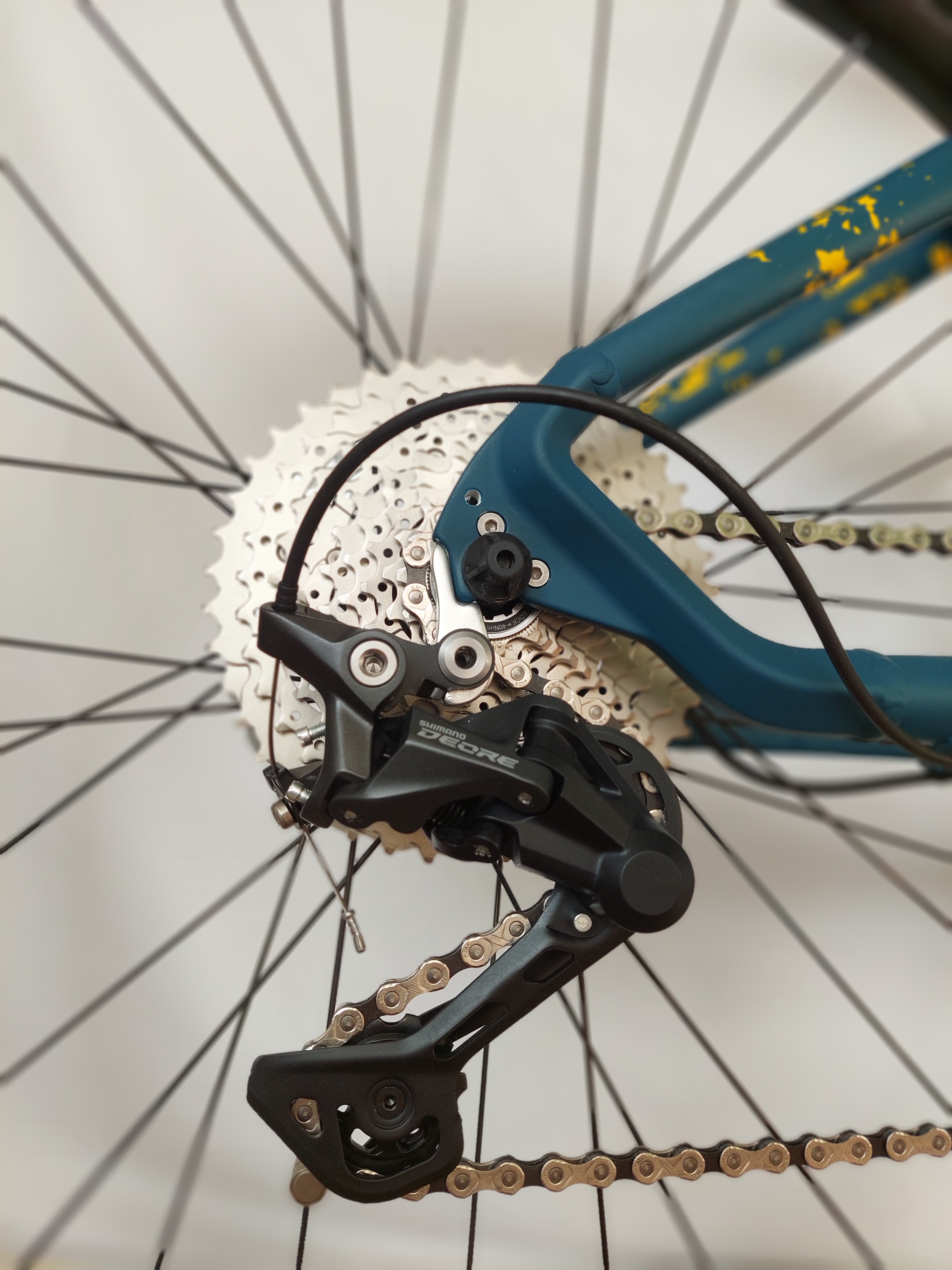 Vordergabel: Suntour XCM 100 mm, stoßdämpfend und abschließbar